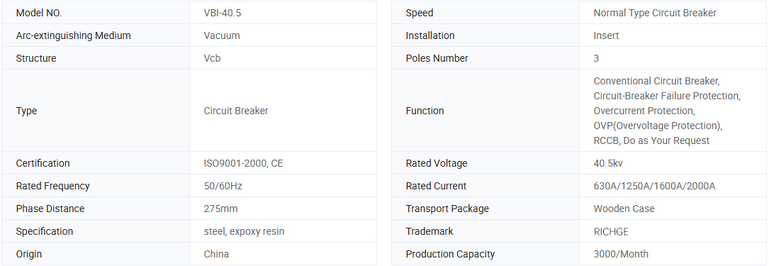 VBI VALTAGE VALTAGE VALLIC CIRCUIT CIRCUIT CIRCUIT یک وسیله داخلی با سه فاز AC 50Hz و ولتاژ دارای رتبه 40.5kV است. این می تواند برای کنترل و محافظت از تجهیزات الکتریکی در شرکت های صنعتی و معدن ، نیروگاه ها و پستها ، به ویژه برای مکانهایی که دارای عملیات مکرر هستند ، استفاده شود. فرم نصب مدار شکن در کابینت سوئیچ می تواند یک نوع ثابت باشد یا یک نوع قابل برداشت نصب شده بر روی یک چرخ دستی. VBI داخلی ولتاژ ولتاژ با ولتاژ بالا دارای عملکرد قابل اعتماد است و نصب آن آسان است. این بهترین انتخاب برای کنترل و محافظت از سیستم های انتقال و توزیع با ولتاژ بالا است.