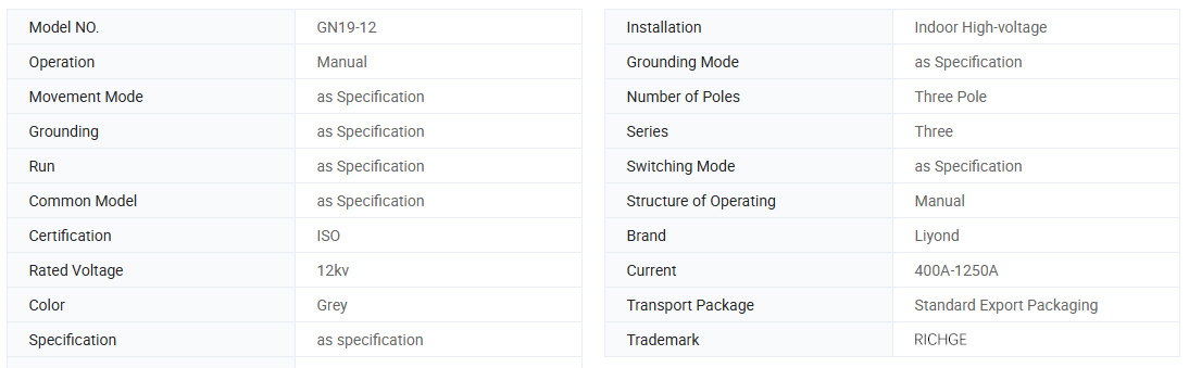 کلید قطع فشار قوی داخلی سری GN19-12 متعلق به تجهیزات سوئیچ فشار قوی است، برای سیستم قدرت ولتاژ نامی 12 کیلو ولت، AC 50 هرتز و کمتر از آن استفاده می شود، مجهز به مکانیزم عملیاتی دستی CS6-1 است و برای شکستن و ساخت مدار تحت بی باری اما با ولتاژ استفاده می شود. نوع کاهش آلودگی اضافی، نوع ارتفاع بالا و صفحه نمایش برقی وجود دارد.