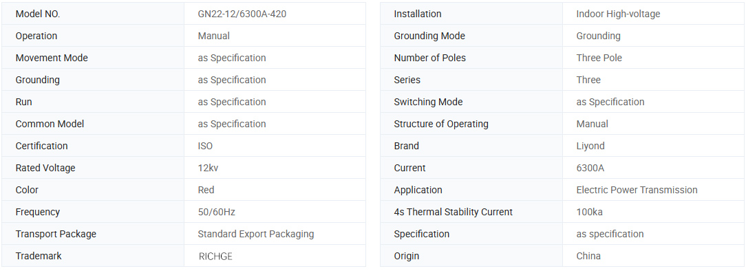 این محصول یک کلید عایق جریان بالا با ساختار چاقوی پایین مشترک سه فاز است. این یک نمونه اولیه قفل مکانیکی با عمل دو مرحله ای بسته شدن و تماس، دستیابی به تماس بدون سایش، نیروی عملیاتی کوچک، فشار تماس بالا، و پایداری حرارتی دینامیکی خوب را اتخاذ می کند.