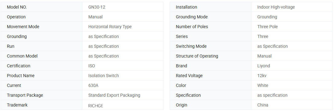 قطع کننده ولتاژ بالا روتاری داخلی GN30-12 یک نوع جدید با چاقوی دوار است. فرمول ساختاری اصلی این است که دو مجموعه عایق و کنتاکت را در سطوح بالایی و پایینی قاب سه فاز مشترک پایین ثابت کنیم و با چرخاندن چاقو، کلید باز و بسته شود. سوئیچ GN3-12D شکلی از چاقوی اتصال را بر اساس GN30-12 اضافه می کند تا نیازهای سیستم های قدرت مختلف را برآورده کند. این محصول دارای طراحی فشرده، فضای کوچک، عایق قوی، نصب و تنظیم آسان است. این الزامات "سوئیچ جدا کننده ولتاژ بالا و سوئیچ ارت" را برآورده می کند و برای سیستم های داخلی با ولتاژ نامی تا 10 کیلو ولت AC 50 هرتز و کمتر قابل استفاده است. می توان از آن به عنوان مدار باز و بسته در مواقعی که ولتاژ و بدون بار وجود دارد استفاده کرد. می توان از آن با تابلو برق فشار قوی استفاده کرد یا به تنهایی استفاده کرد.