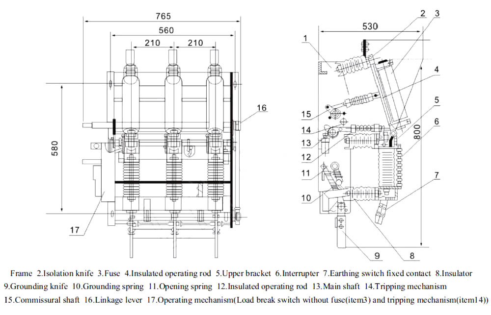 سوئیچ بار خلاء با ولتاژ بالا سری FZN21-12 عمدتاً از Framer ، جداکننده سوئیچ (فیوز محدود کننده جریان از Combiner در سوئیچ قطع) تشکیل شده است) ، لوله سوئیچینگ خلاء ، سوئیچ زمینی ، مکانیسم کار بهار و غیره. این محصول دارای ساختار جمع و جور ، حجم کم ، عمر طولانی ، ظرفیت بسته شدن و شکستن قوی و عملکرد و نگهداری آسان است. سوئیچ خلاء مجهز به مکانیسم بهاری است که یک موتور الکتریکی (کتابچه راهنمای دیگر) ذخیره انرژی بهار را اتخاذ می کند ، و دو نوع روش بسته شدن وجود دارد: بسته شدن الکترومغناطیس و تقسیم و بسته شدن دستی. سوئیچ قطع کننده ، سوئیچ خلاء و سوئیچ گوشتی با یکدیگر (اتصال مکانیکی) برای جلوگیری از سوء استفاده از یکدیگر به هم پیوسته اند.