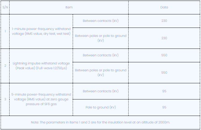با توجه به استحکام ذاتی عایق ذاتی گاز هگزا فلوئورید گوگرد و حرکت بهینه تماس قطع کننده مدار ، قطع کننده مدار جریان خازنی را بدون سلطنت می شکند. سطح عایق خارجی زیاد است ، عایق خارجی با فاصله خزنده بزرگی طراحی شده است ، فاصله نسبت خزنده 31 میلی متر/کیلو ولت است و عملکرد مقاومت در برابر خاک بسیار عالی است. همچنین می تواند با خیال راحت در محیط های سخت کار کند.
