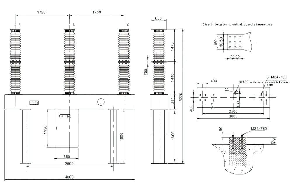 قطع کننده مدار یک ساختار یک ستون چینی سه فاز را اتخاذ می کند. این سه مرحله مجهز به مکانیسم عملیاتی بهار است که به صورت مرکزی مرتب شده و سه فاز عمل می کند ، بنابراین ظاهر جدید و نفیس است. قطع کننده مدار از گاز SF6 به عنوان عایق و محیط خاموش کننده قوس استفاده می کند. در حین کار ، گاز سه قطبی SF6 از قطع کننده مدار به هم وصل می شود و از رله چگالی نوع اشاره گر برای نظارت بر فشار و چگالی آن استفاده می شود. با توجه به اصل خاموش کردن قوس خود انرژی و طراحی بهینه شده در سیستم حرکت شکن مدار ، راندمان مکانیکی به طور موثری بهبود می یابد و کار عملیاتی به حداقل می رسد.