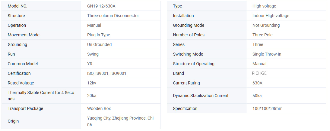 سوئیچ عایق ولتاژ بالا AC داخلی سری GN19-12(c) برای سیستم برق AC 50Hz، ولتاژ نامی 12kv و کمتر مناسب است، مجهز به مکانیزم دستی CS6-1 است و برای شکستن و ایجاد مدار در شرایط بدون بار استفاده می شود. نوع آلودگی اضافی، نوع ارتفاع بالا و نوع نشان دهنده قدرت وجود دارد. طبق استاندارد IEC 62271-102 ساخته شده است. برای سوئیچینگ لوازم الکتریکی تحت شرایط ولتاژ اما بدون بار استفاده می شود، همچنین برای تولید دستگاه های ضد رسوب، نوع فلات و نمایشگر زنده قابل نصب نیز ارسال می شود. کلید عایق فشار قوی داخلی سری GN19-12 یک دستگاه داخلی با ولتاژ نامی 12kv و سه فاز AC 50Hz است.
