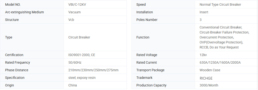 VBI-12 Voltage Voltage Vacuum Circuit Circuit نوعی تجهیزات ولتاژ متوسط داخلی با ولتاژ با امتیاز 50Hz/60Hz سه فاز AC 12KV است که این فناوری را ترکیبی از فناوری شرکت ABB در سوئیس و در چین توسعه داده است. محصول با استاندارد GB1984 و IEC62271-100 مطابقت دارد.